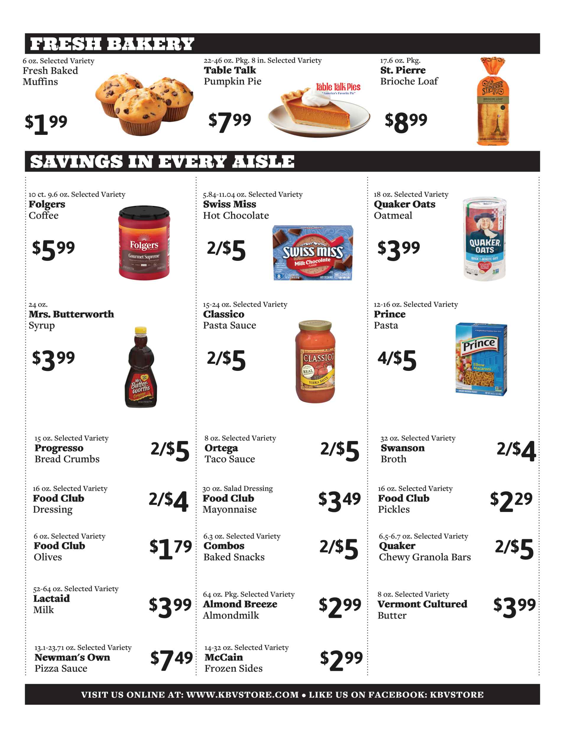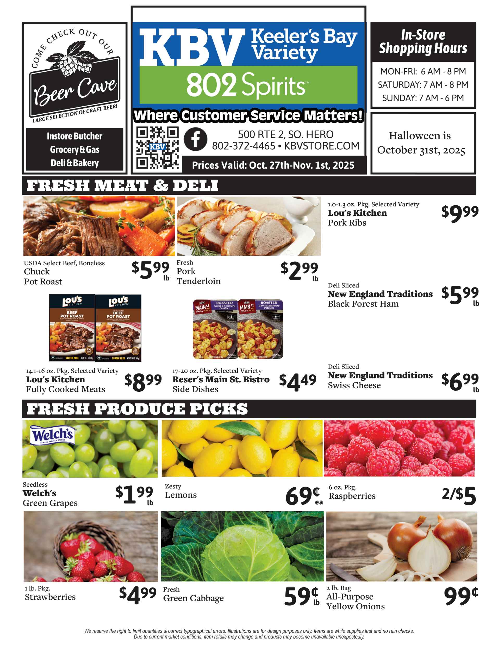 Weekly Specials If you would like to receive weekly specials in your inbox, please sign up for KBV’s email list here. Sale Dates: Monday, October 27- Saturday, November 1, 2025 Sale Dates: Monday, November 3- Saturday, November 8, 2025 10% off Wine on Wednesdays - .05/gallon off Gas on Tuesdays